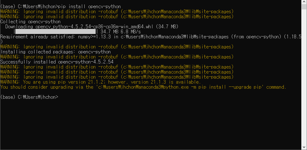 Python 에서 OpenCV 를 설치하기 위해 pip 를 사용하여 설치할 수 있다.
